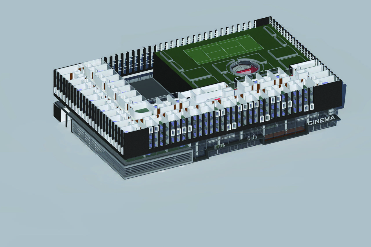 Voor een locatie in Amstelveen hebben we een ontwerp gemaakt voor ‘the Nightporter’; een gebouw waarin de functies van hotel, bioscoop en appartementen zijn ondergebracht. In het plint zijn de toegangen naar de verschillende functies opgenomen. De glazen onderbouw fungeert als grote etalage, de onderzijde van de bioscoopzalen zijn van hieruit zichtbaar. In het opgetilde volume zijn de hotelkamers ondergebracht. De appartementen woningen bevinden zich op een derde leeflaag en kijken uit over het ervoor gelegen plein.