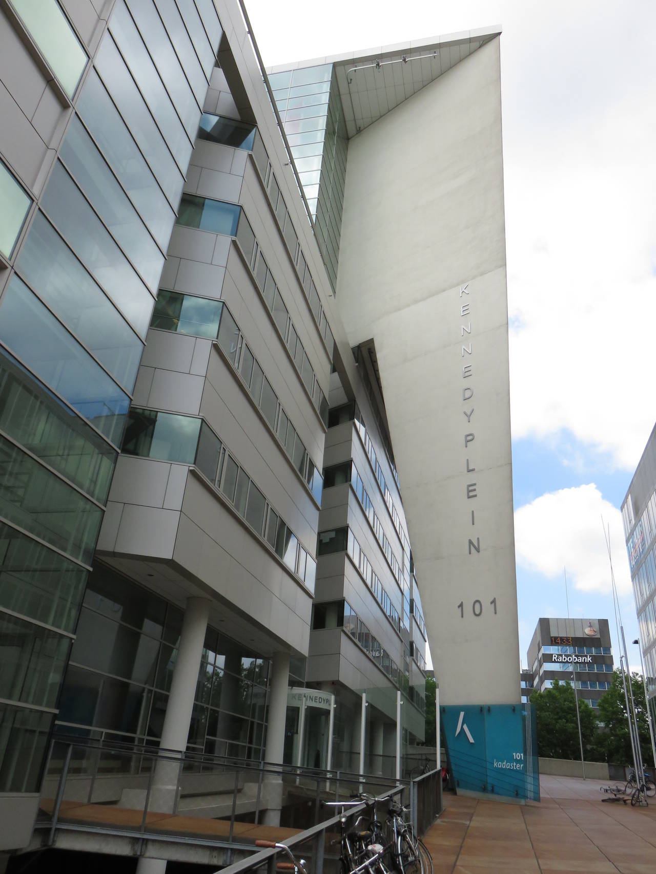 Het entreegebied en het atrium van het kantoorgebouw aan het Kennedyplein 101 in Eindhoven is grondig gerenoveerd. Voor de entrees en het atrium hebben we een nieuwe aankleding ontworpen waardoor zij een frisse en tijdloze uitstraling hebben gekregen. Materiaalkeuze is in samenwerking met HIP projects tot stand gekomen. De scheve lijnen van het bestaand ontwerp worden door de gekozen materialen extra geaccentueerd. De bestaande tourniquet is door een grotere vervangen waardoor gebruikers en bezoekers van het gebouw royaler binnen komen. In het gebouw zijn de toiletten gerenoveerd en hebben een tijdloze uitstraling gekregen