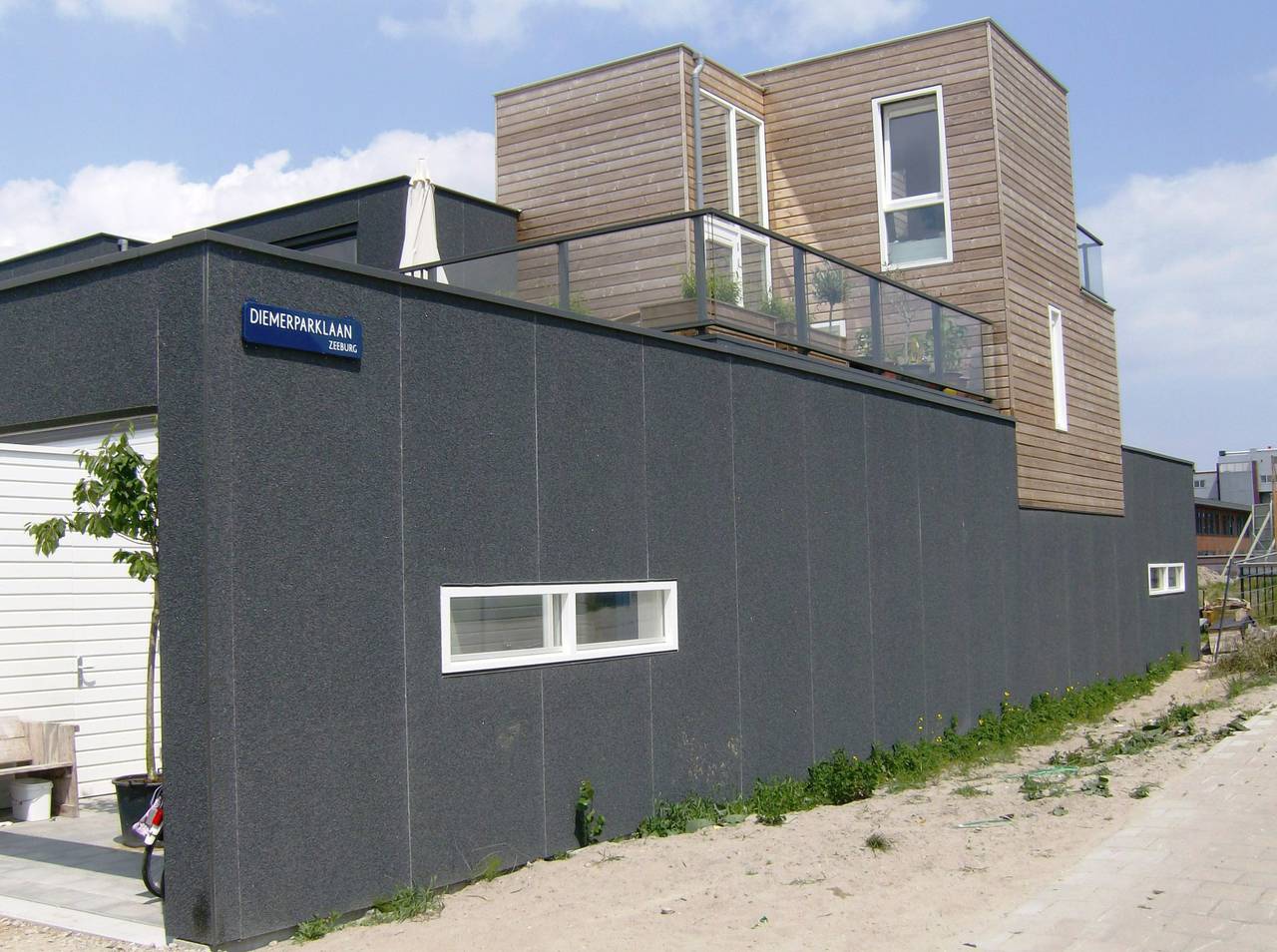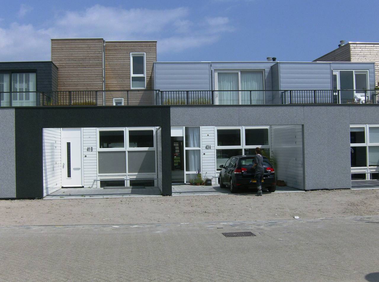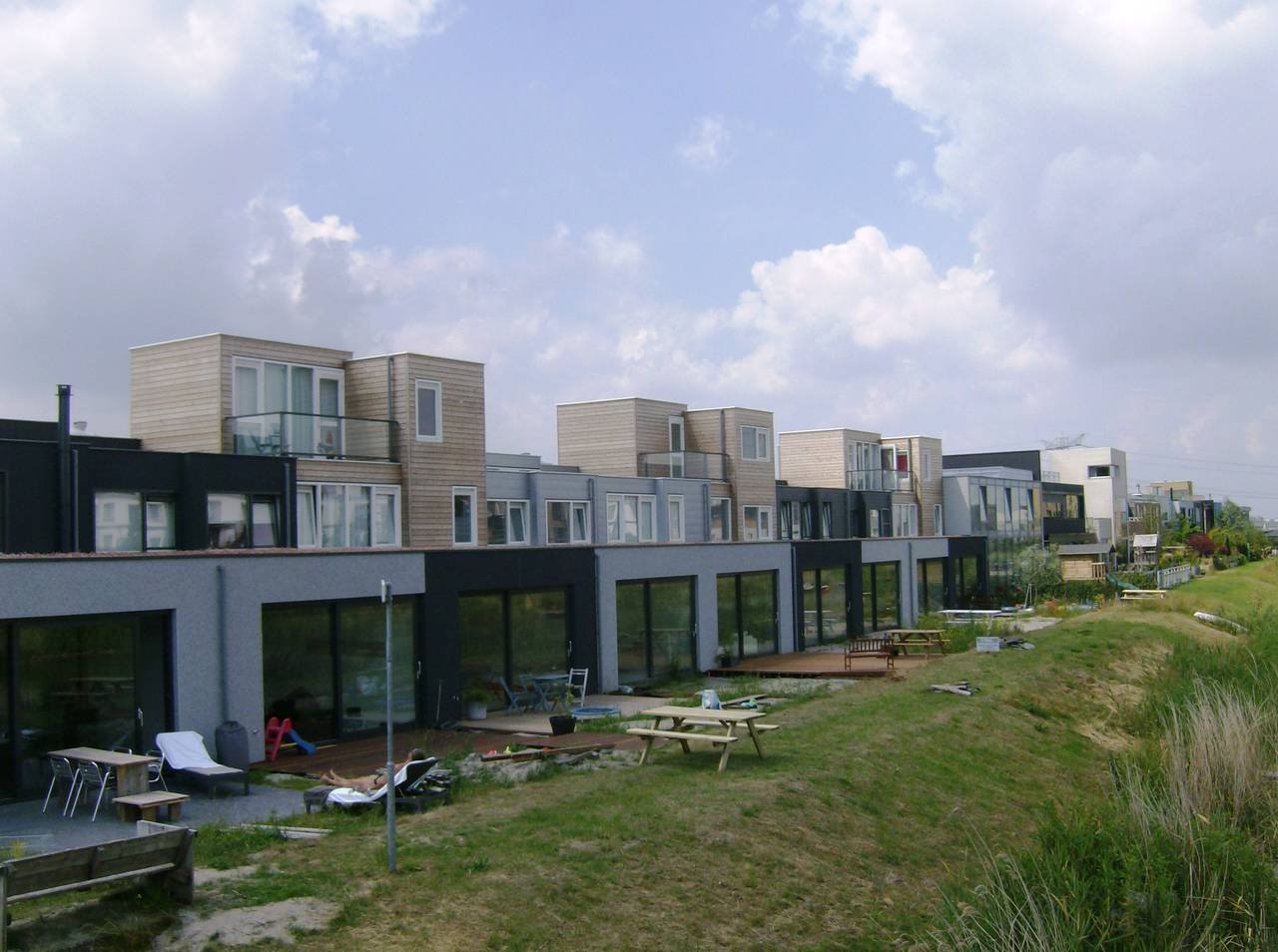 On the ‘Kleine Rieteiland’ on IJ-Burg In Amsterdam we designed a residential block with 10 houses. The houses are built in split-level and are therefore very spatial. A number of residential functions are partially placed underneath the ground level. For the façade finish, the residents could choose out of different materials.