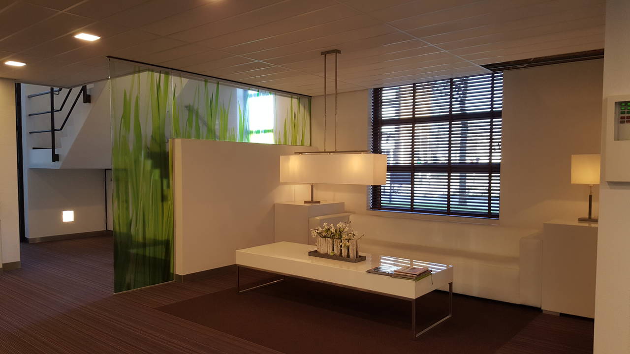 For the entrance hall of the office building at the Wijchenseweg 102 in Nijmegen we have designed a new decoration. The waiting room has been given the atmosphere of a living room.