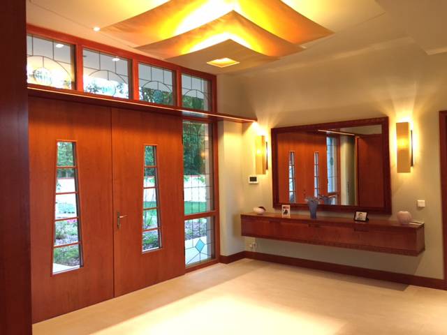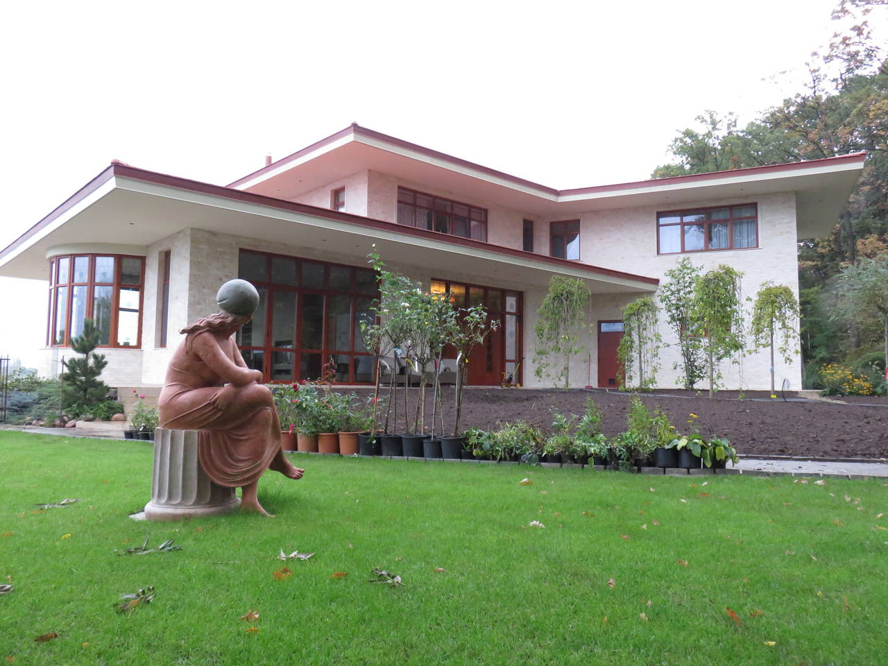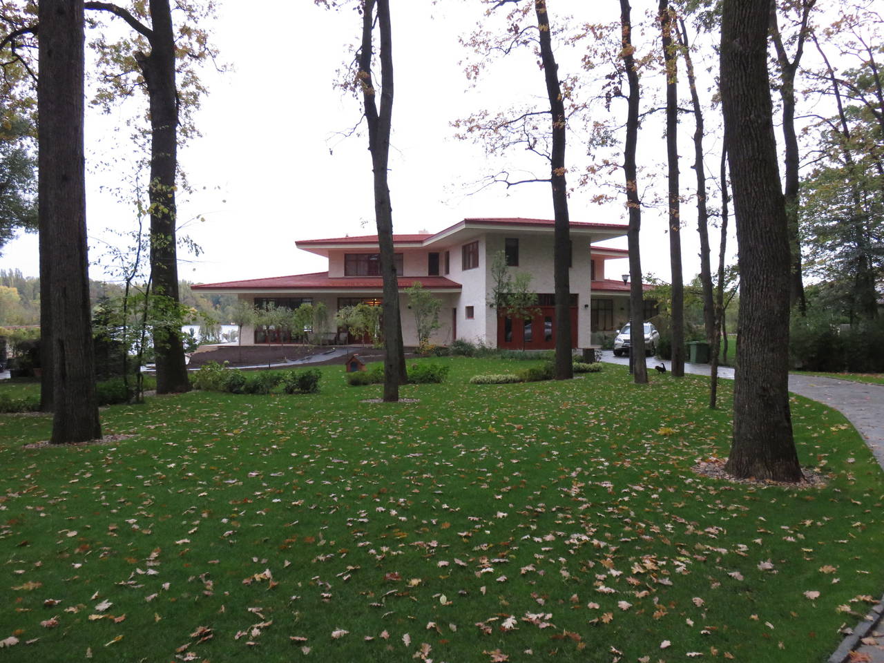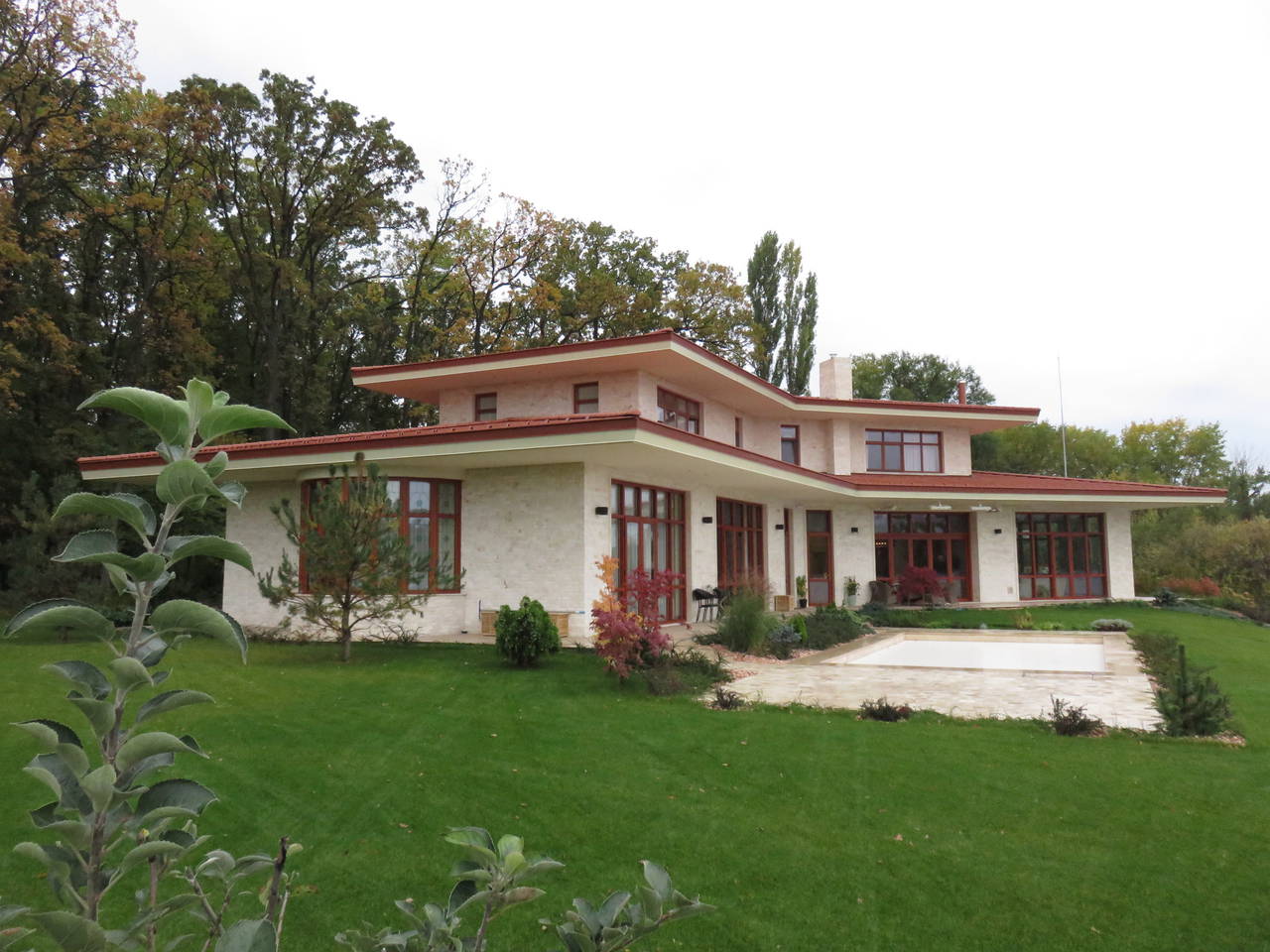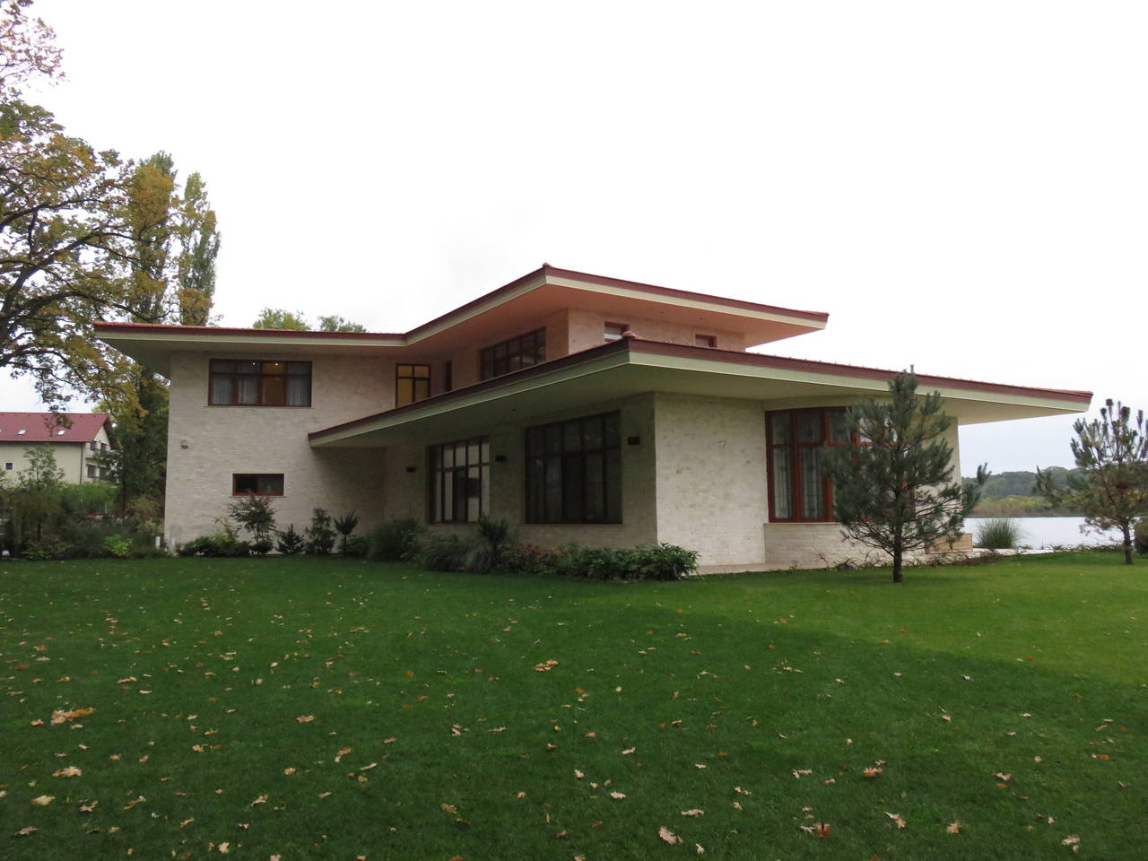 On an empty besides the lake of Snagov in Romania we designed a luxury villa for Dutch client. On the ground floor we find the living- and working room, the kitchen and the master bedroom. On the first floor we find the sleeping rooms for children and guests. Because of the country climate we choose for a roof type with a large overhang to reduce the solar radiation in the summer. The building has an earthquake resistant construction.