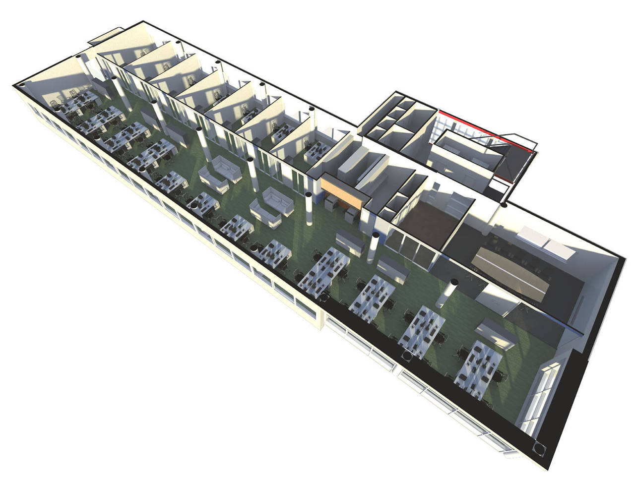 Het bestaand kantoorgebouw ‘Haagse Veste’ in Den Haag bestaat uit een grote vleugel en drie kleine. In één van de kleine vleugels is een nieuwe entree ontworpen om het gebouw multi-tendent te maken. In de nieuwe entreehal is een nieuw interieur gemaakt. Voor de verdiepingen is een indeling ontworpen, Daarnaast is een showvloer in het gebouw ingericht.