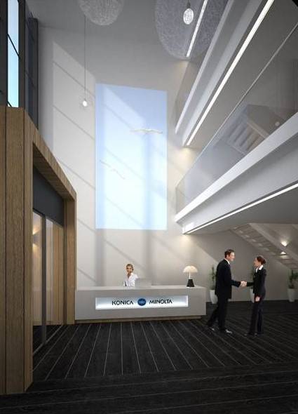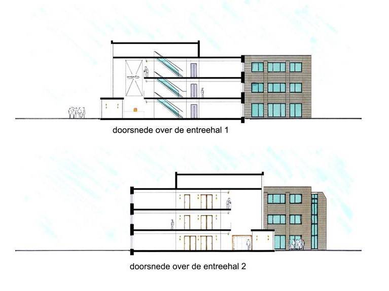 De entree van het gebouw is representatief gemaakt door een vide over de volledige hoogte van het gebouw ter plaatste van de hoofdentree. Aan de buitenkant is de entreehal zichtbaar gemaakt door de introductie van een groot glazen venster dat uitkijkt op de toegangsweg van het gebied.